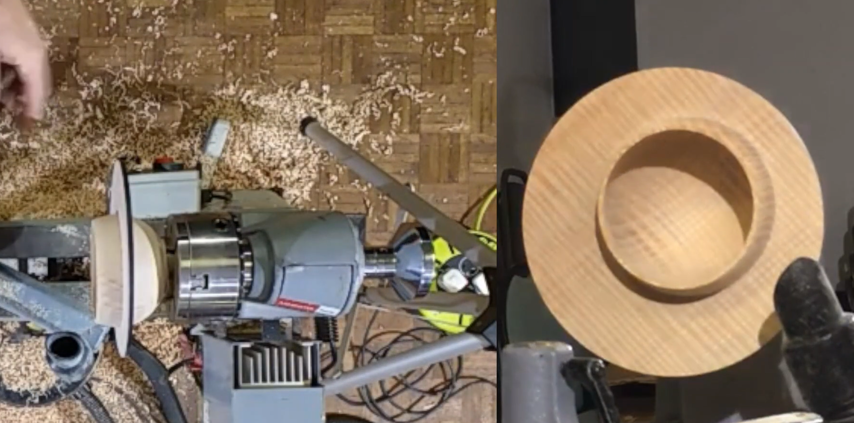 Bryan Milham demonstrated the art of “turning a hole” from a large piece of Ash and then burning it to making a tealight holder which appears to have been struck by lightning.